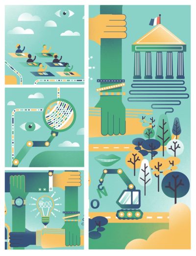 For the launch of their new website, « le chêne et le roseau », a french consulting company, ask me to create an editorial illustration summing up their skills and expertises.